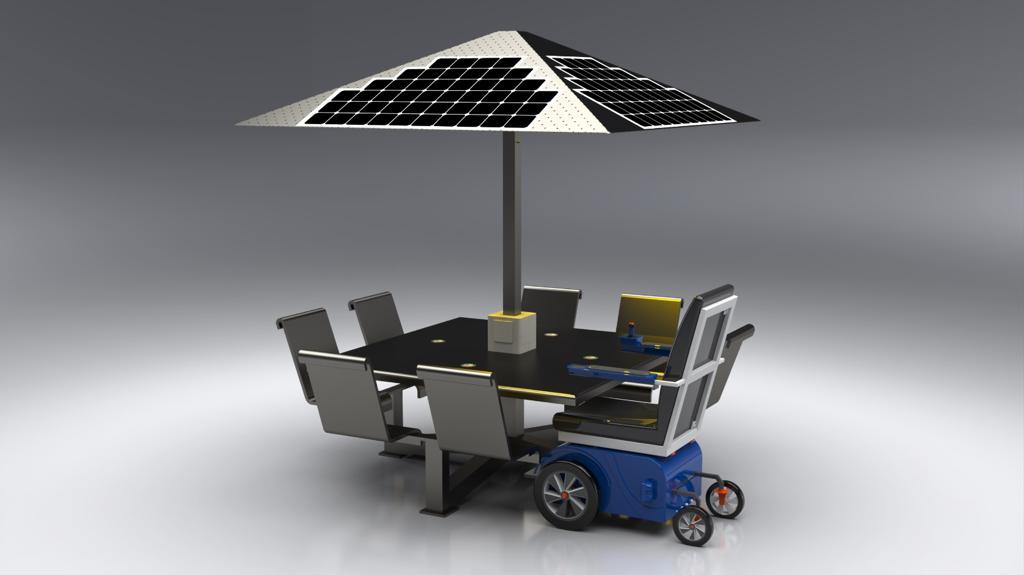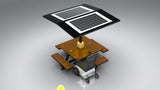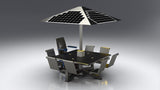 This state-of-the-art and heavy-duty smart solar charging table is an excellent addition to any outdoor space. The ST1030 MU provides a comfortable lighting experience with shade that raises the solar panels to make sure our customers stay cool through-out the day. With the ability to charge up to 6 devices at the same time and providing connectivity through a WIFI connection. (4 wireless charging pads & 2 USB stations). This table provides twice as much seating and more that twice as much power generation when compared to the ST1020 RU.